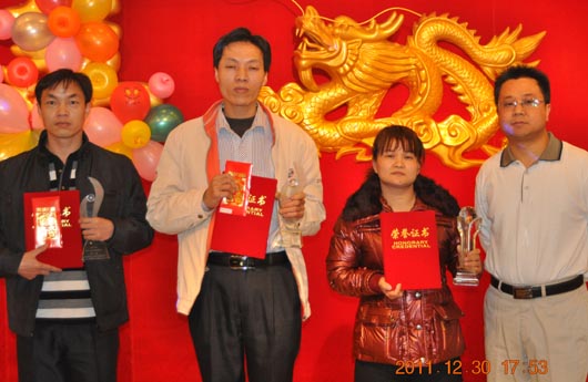 大会首先由公司总经理杨俊奇先生发表了新年致词。他回顾了2011年公司在生产合并、产量提升、品质改进等方面取得的成绩,对全体与员工2011年的辛勤劳作表示了衷心的感谢,同时指出了公司2012年的发展目标和方向,希望新的一年友荣全体员工能再次共同携手,再接再励,共同书写友荣全新的灿烂与辉煌。 大会第一项为2011年度颁奖典礼。颁奖嘉宾杨总、东总,毛部、张部、古部、陶部,何部分别对2011年优秀员工、年度忠诚员工、质量在我心中演讲比赛获奖者、年度优秀通讯员颁发了表彰奖励。年度优秀员工胡仁利、周发华、吴翠娥分别发表了获奖感言。优秀的诞生是各位员工辛勤努力,是对公司的忠诚和热爱,公司也将以最大的努力回报各位。 颁奖典礼结束后公司全体员工共进了新年晚宴,精心准备的忘年晚会在晚宴后正式上演。精彩的节目,精美的小礼品,员工们忘情的表演及观众的活泼互动,让整个忘年会一直沉浸在欢乐的气氛中,一次次的抽奖活动更是将晚会的气氛引到了暴热。晚会积极向上、活波健康的形象展示着友荣风采,充分体现了公司员工青春激昂、锐意进取的精神面貌,晚会在和谐、温馨的气氛中圆满结束。 |