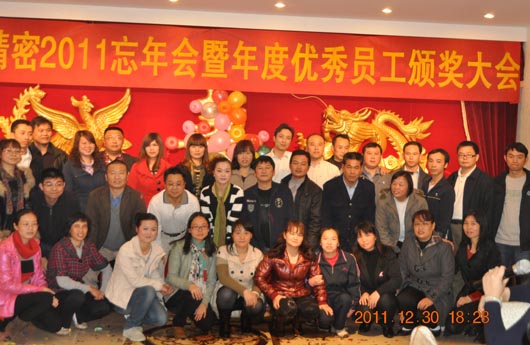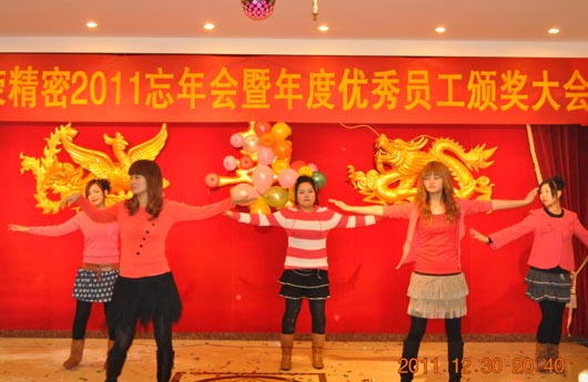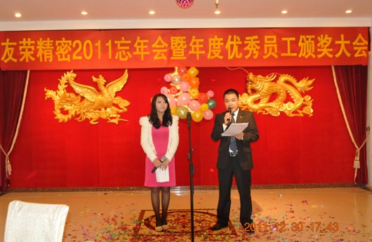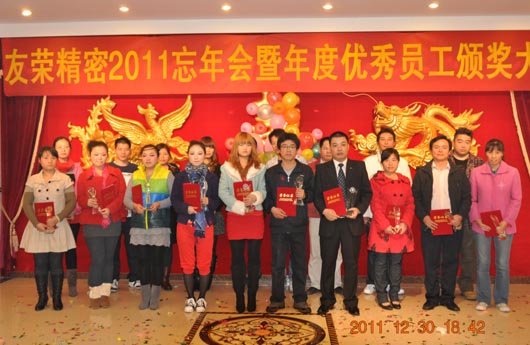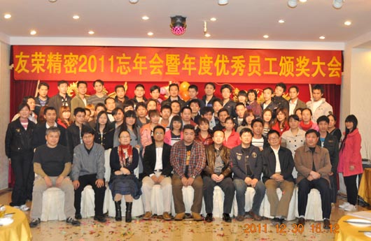 2011年12月31日,公司200余名员工欢聚一堂,辞旧迎新,共庆元旦佳节。伴随着悠扬的背景音乐,两声新年的礼炮为我们拉开了“友荣精密2011忘年会暨年度优秀员工颁奖大会”的序幕。