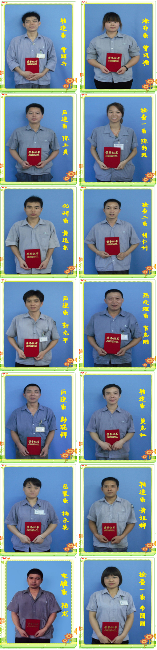6、 转造系——曾祥兴:尽管他所担当的机台有很多已经相当的“年老”,但在他的指挥下,他们努力工作,为着优质高产,不断的努力奋斗。5月份他月度产量40700k,不良率1.47%,零报废,更换产品59次,以系内综合排名第三再次当选月度优秀员工。